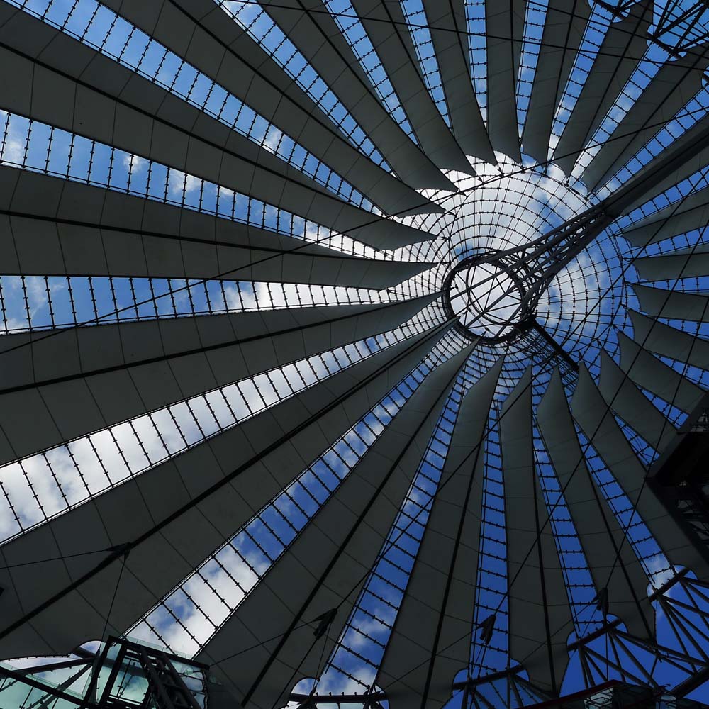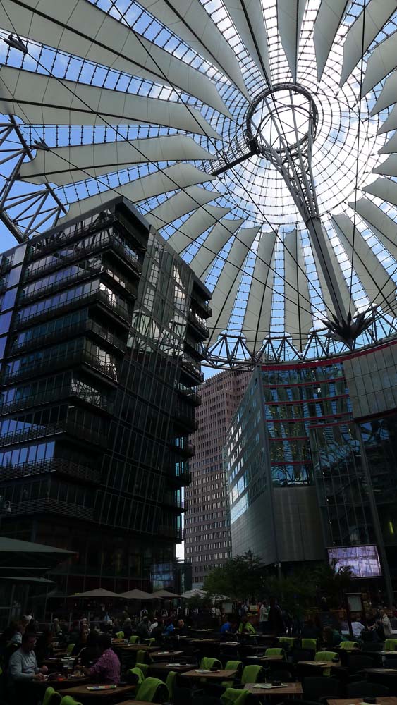 Because Berlin stood at the crossroads of the grimmest history of WWII and the Cold War, the city expresses a self-conscious desire to break from this past. Helmut Jahn’s project is a futuristic theatre of light and transparency on the scale of the Roman Colosseum. The Sony Center opened in 2000 to the cost of about 750 million euros.