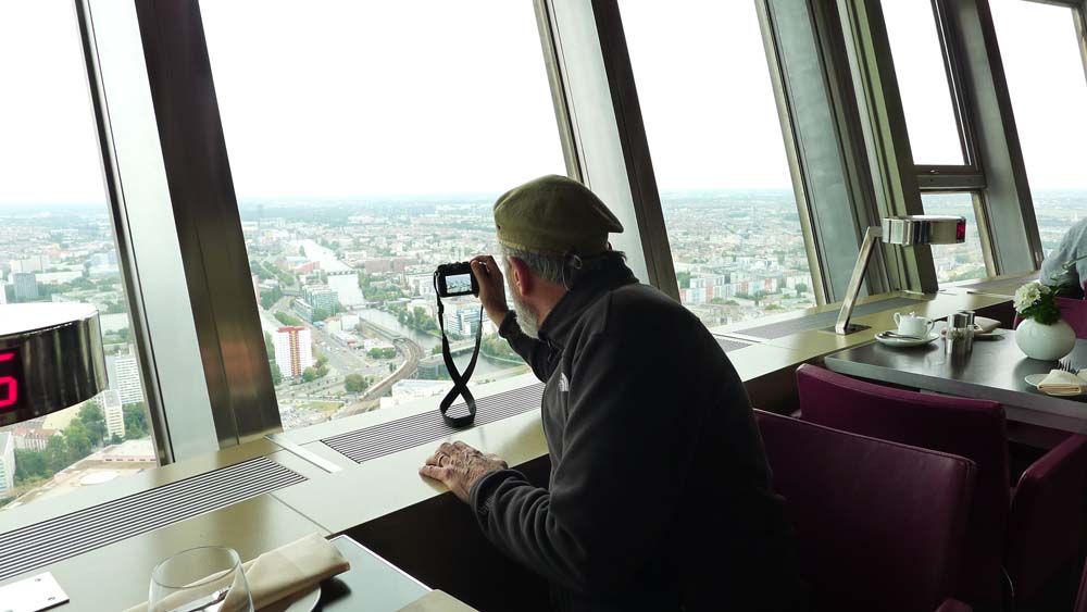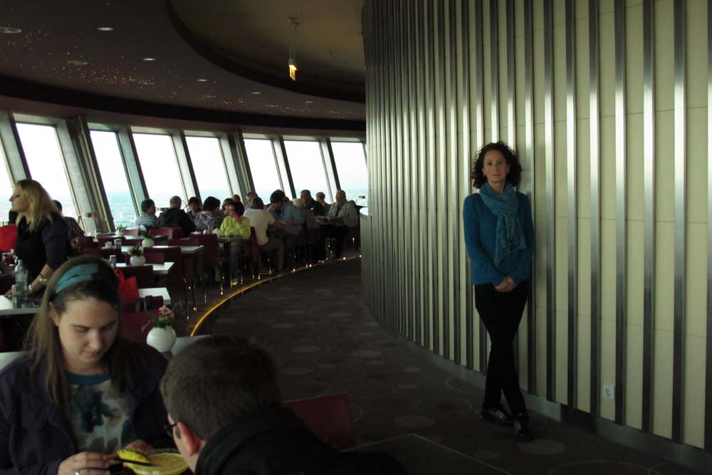 Visitors buy a 12 euro ticket to take a high-speed elevator to the observation deck. No one walks up the 986 steps. We ate at the restaurant which rotates 360 degrees every half hour. The food up here is beside the point, trust me.