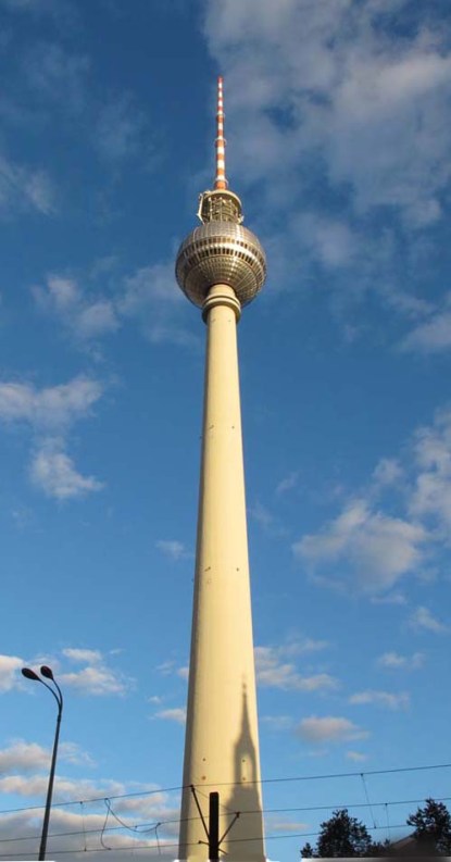 Since 1969 the pride of East Berlin has been the Berlin Needle,  Berliner Fernsehturm, which is still the tallest building in Berlin today.  More than 60 radio and TV stations broadcast from the antenna at the top.