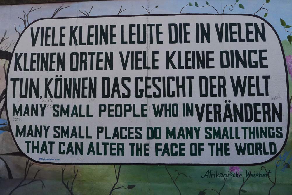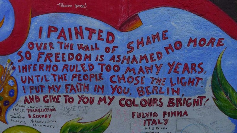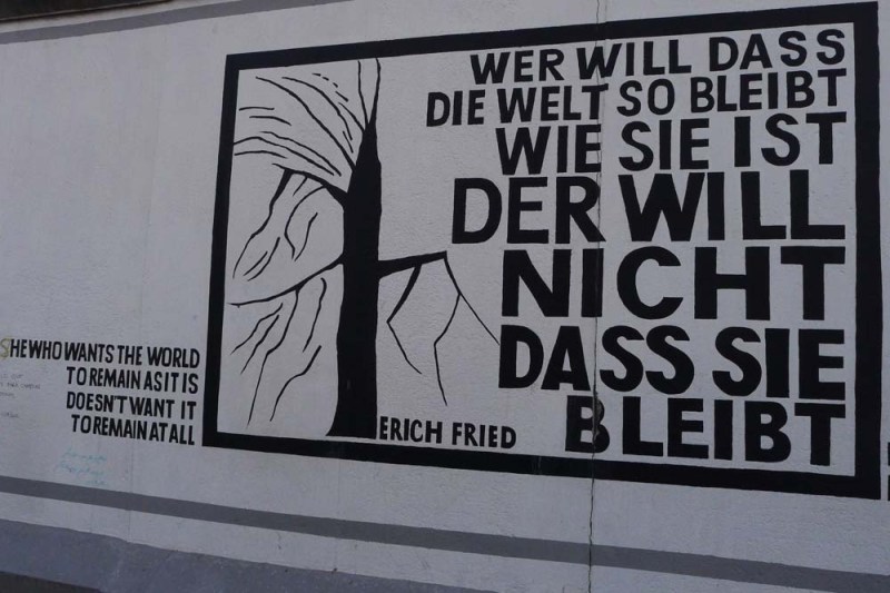 Since 1989 murals have decorated 1.3 km of the old Berlin Wall bordering the Spree river (adjacent to Warshauerstraße SBahn station). This is the East Side Gallery (www.eastsidegallery.com) – 106 paintings by artists who came from all over the world to paint the remnant of the east side of the wall. I  would have liked to see more quality control and less disheartening graffiti, but alas, it’s still an impressive appeal for peace.