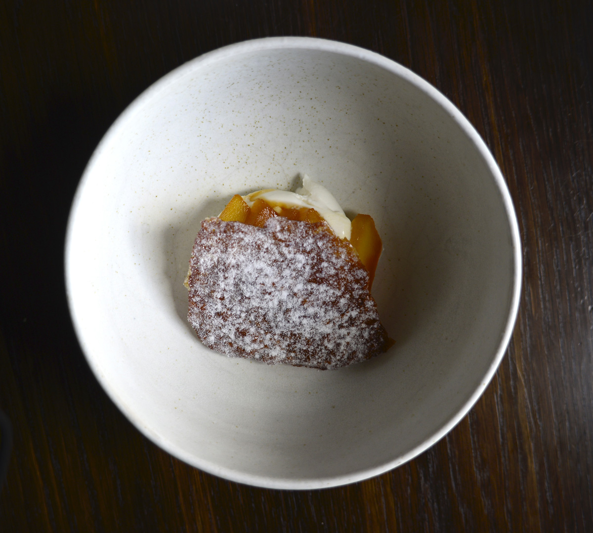 “Grilled corn, egg yolk and black pepper oil”  was the austere description for what came next. What arrived looked like an egg yolk poached in broth. I was baffled. No trace of corn as we knew it.