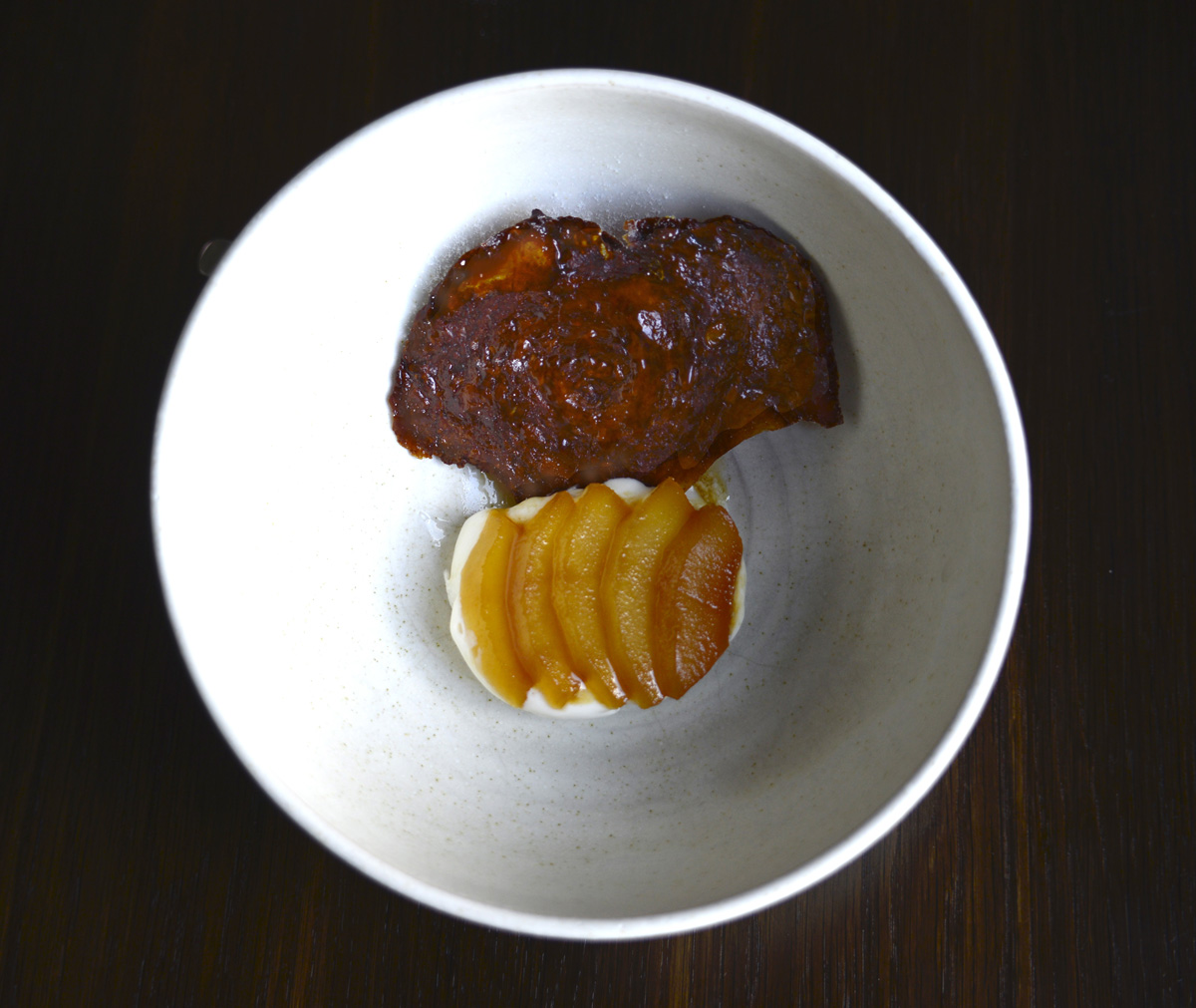 I checked the menu for desert. What in heaven’s name was “yeast ice cream”?  Were we having microbes for desert? It turned out to be a lively, yet mellow background for everything carmelized: carmelized Aroma apples, whisky caramel and carmelized puff pasty.