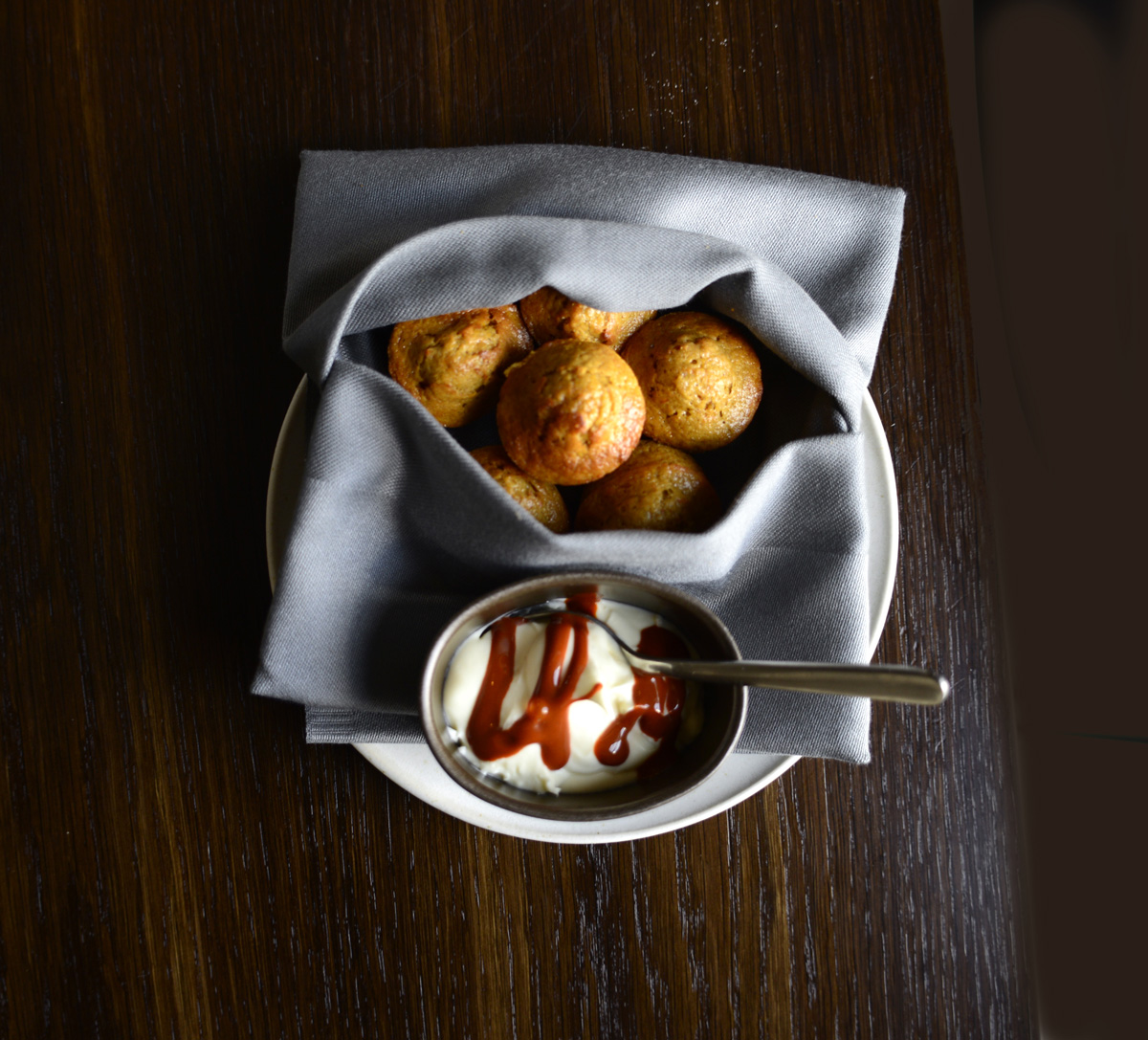 At the end of this divine feast we sipped our coffee and planned a much-needed post-meal bike ride, but before we could gather our wits about us we were surprised by a bonus desert. Here was a nest of irresistible warm mini carrot/sea-buckthorn berry muffins paired with a dipping sauce of  crème fraîche drizzled with intense carrot reduction syrup. More, please!