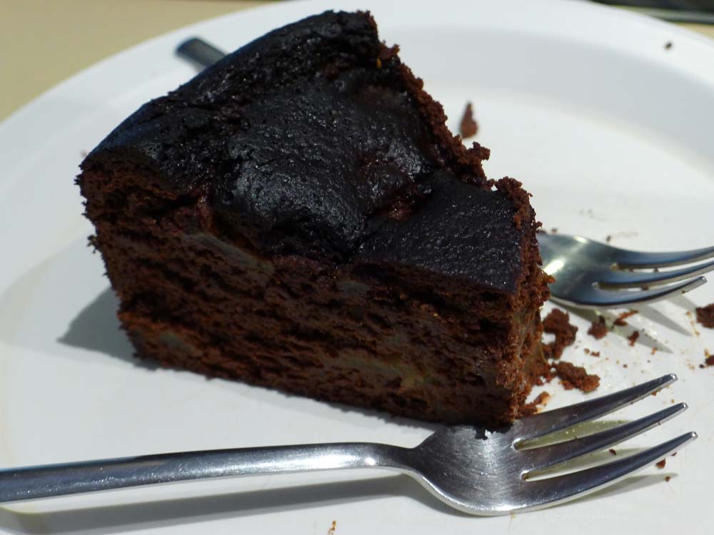 The chocolate rum pear cake was succulent and intense.