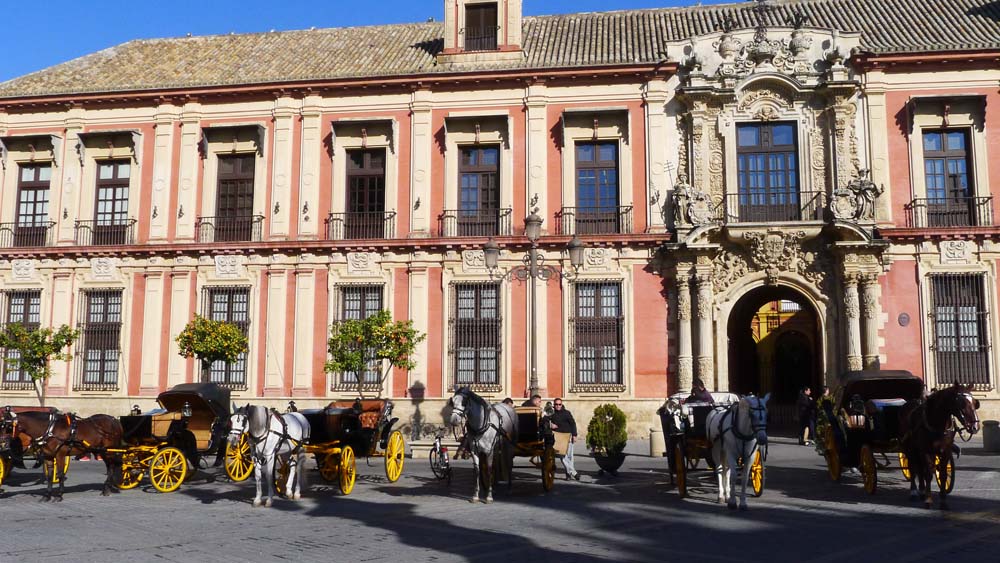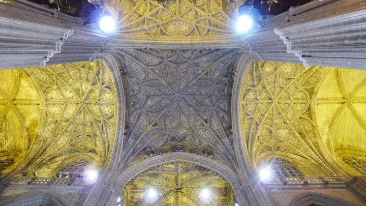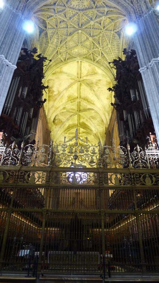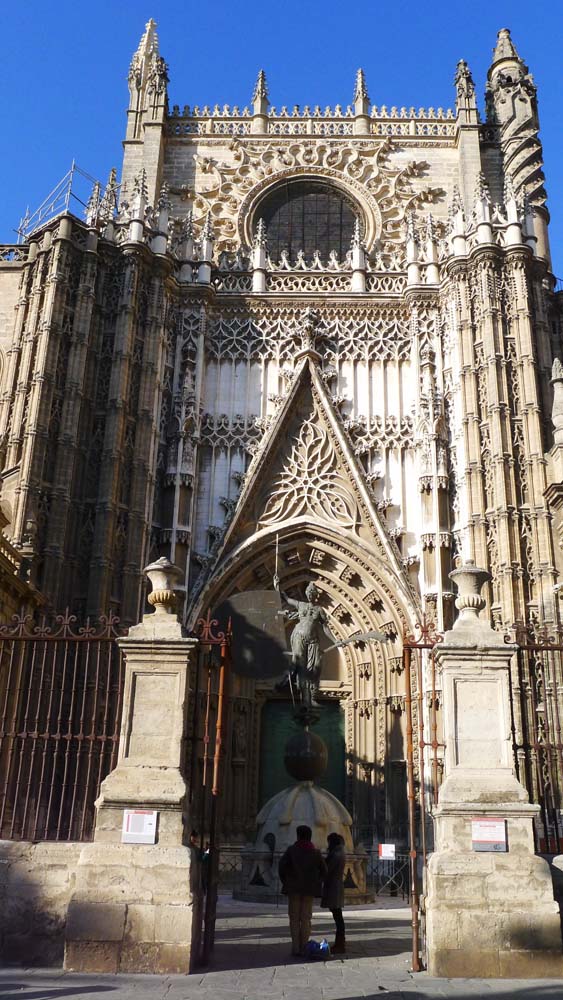 Near the Alcázar is the grand Cathedral, Santa Maria de la Sede. It was consecrated after the reconquest of the Moors by the Christians in 1248. The Cathedral is built on the former site of a mosque (built in 1171). The present construction started in 1401, but contractors, masons, painters, plasterers, and stone carvers didn’t leave the job site until 1506!