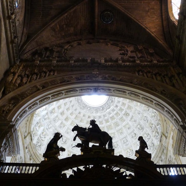 The Cathedral’s treasury is a reminder that Sevilla was granted a monopoly on trade with the New World. That means all ships going to the New World left from the river port of Sevilla and returned to the river port of Sevilla. Sevilla dominated Spain’s colonial commerce for two hundred years, and was the center for the mint.